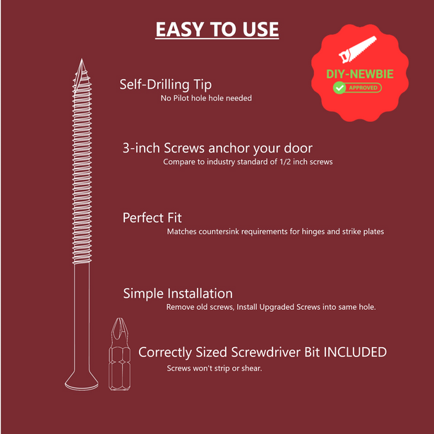 16 Steel Core Screws and No Strip Screwdriver Bit